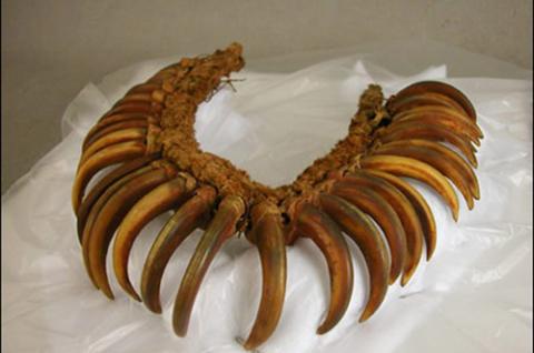 Nhưng chiếc vòng cổ này đã bị mất do lỗi của một nhân viên bảo quản. Khi Bảo tàng Peabody Harvard mua lại hiện vật này vào năm 1941, một nhân viên đã cho nó vào danh mục hiện vật của các đảo Nam Thái Bình Dương. Chỉ cho đến năm 2003, chiếc vòng cổ vuốt gấu này mới được tái phát hiện vì những người phụ trách của phòng lưu trữ Châu Đại Dương ở bảo tàng Peabody nhận ra rằng chiếc vòng cổ này không có vẻ gì là liên quan đến biển cho lắm.