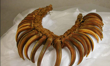 Hai nhà thám hiểm William Clark và Meriwether Lewis đã trở thành huyền thoại sau khi họ tiến hành khám phá miền Tây nước Mỹ thuở còn sơ khai. Trong chuyến thám hiểm của mình, họ đã đưa về một số hiện vật bản địa. Một trong số đó là chiếc vòng cổ làm từ vuốt gấu. Đây là một đồ trang sức rất quý hiếm biểu thị sự dũng cảm mà các chiến binh bộ lạc người bản địa ở Mỹ đeo khi đi săn. Chiếc vòng cổ gồm 38 móng vuốt gấu, mỗi chiếc có kích thước khoảng 7,5 cm.