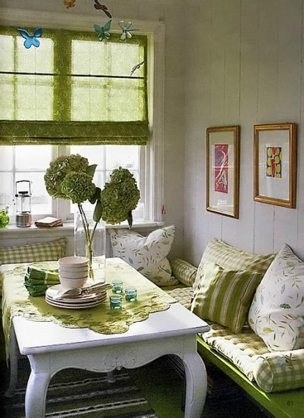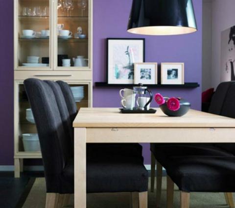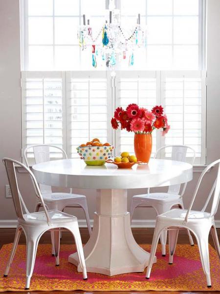 Phòng ănmang tone màu đơn sắc nhưng lại không đơn điệu.Những màu sắc sáng và màu trắng sẽ phản chiếu ánh sáng tư nhiên tốt hơn những màu tối. Những căn phòng nhỏ phải được sơn màu sáng nhưng nếu bạn là người yêu màu tối, bạn có thể làm điều này bằng cách thêm vào một vài phụ kiện rực rỡ. Bạn cũng có thể sử dụng những màu đơn sắc, hãy sử dụng những màu mà giúp tăng cảm giác rộng rãi.