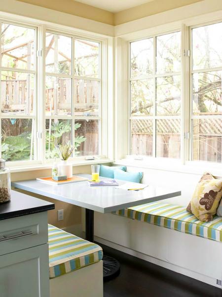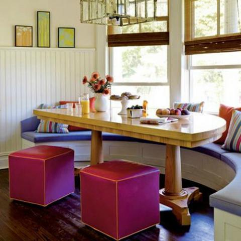 Hãy chọn những chiếc ghế chân ngắn cho không gian phòng ăn. Những đồ nội thất thấp sẽ giúp không gian trông thoáng hơn, bởi lẽ nó không cản không gian tầm nhìn. Một băng ghế dài thay thế những chiếc ghế thông thường sẽ là ý tưởng tuyệt vời cho việc tiết kiệm không gian cho những phòng ăn có diện tích khiêm tốn nhất.