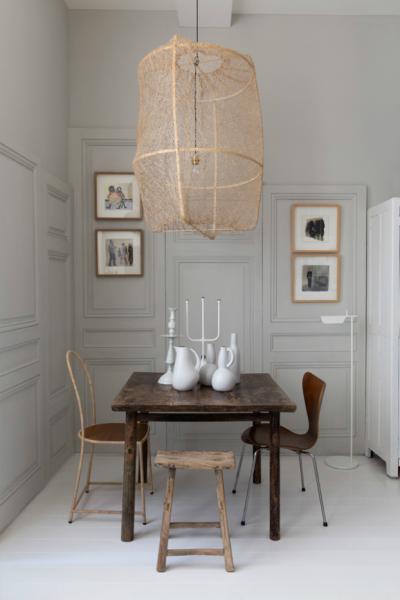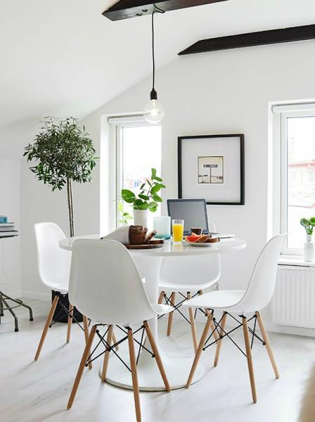Bộ bàn ghế gỗ đơn giản là điểm nhấn trong căn phòng tone màu trắng. Đơn giản, nhưng lại quá đẹp!