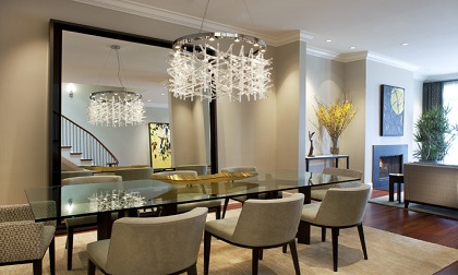 Gương đẩy mạnh nhận thức về không gian, đặc biệt nếu như bạn đặt một tấm gương lớn lên toàn bộ một bên tường và đặt chiếc bàn ăn của bạn đối diện vơi bức tường được đặt gương, hiệu ứng sẽ rất bất ngờ đấy. Chiếc bàn dành cho 4 người của bạn trông sẽ giống như chiếc bàn dành cho 8 người vậy.
