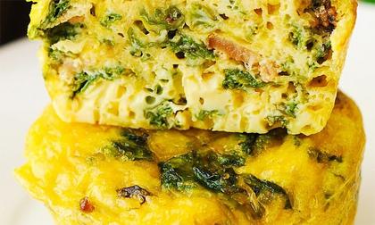 Bánh muffin trứng: Bánh muffin trứng kết hợp với thịt xông khói và rau bina. Bánh có thể được làm từ hôm trước, bảo quản trong tủ lạnh và dùng vào các buổi sáng hôm sau, rất dễ dạng, tiện lợi và dinh dưỡng.Ảnh: Julias Album.