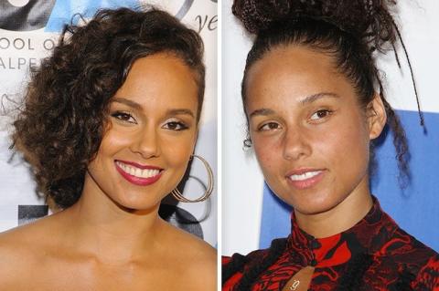 | Alicia Keys là một trong những ngôi sao yêu thích vẻ đẹp tự nhiên và thường xuyên khoe mặt mộc tươi tắn tại các sự kiện hay trang bìa tạp chí. "Tôi không muốn che đậy nhan sắc của mình", Alicia cho biết. |