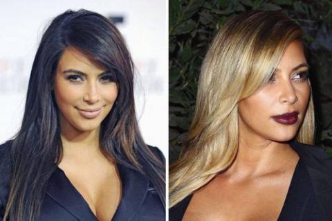Sau khi sinh con, Kim Kardashian bất ngờ từ bỏ mái tóc đen thường thấy để chuyển sang màu vàng bạch kim. Cùng với đó, cô thay đổi cách trang điểm nude sang nhiều tông trầm để gương mặt nổi bật với mái tóc sáng màu.