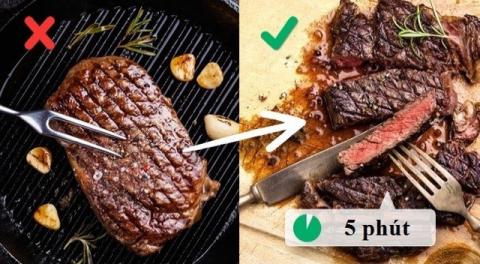 9. Ăn thịt ngay sau khi nấu chín: Dù có quá đói hay bị hấp dẫn bởi món ăn, bạn cũng nên kiên nhẫn chờ khoảng vài phút sau khi nấu chín thịt. Điều đó sẽ giúp bạn cảm nhận được hết hương vị thơm ngon của thịt.