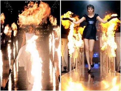 Cùng chủ đề chụp ảnh trên sàn catwalk có lửa nhưng chắc chắn hình ảnh người mẫu với hai ngọn lửa trên tay của Mỹ sẽ ấn tượng hơn rất nhiều.