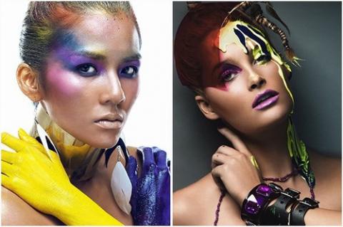 Nếu như ở mùa thứ 10 (2008), quán quân Whitney Thompson (hình phải) chụp với sơn nhiều màu sắc thì thí sinh Hà Thu (Hình trái) ở mùa thứ 04 (2013) của phiên bản Việt cũng không kém cạnh với những vết màu loang lổ trên mặt.