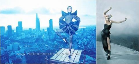 Với phần hình ảnh chụp trên cao của American’s Next Top Model mùa thứ 18 (2012) được chăm chút kỹ càng thì ở mùa thứ 03 (2011) của phiên bản Việt (hình trái) lại hơi sơ xài khi còn nguyên giá đỡ bên dưới