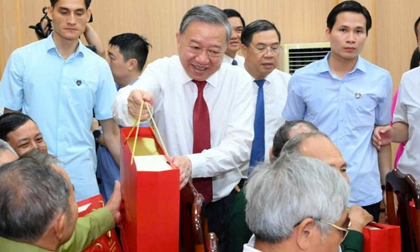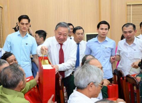 Tổng Bí thư Tô Lâm tặng quà cho người có công, gia đình chính sách. Ảnh: Thành Cường