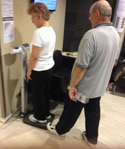 Ông đỡ bà tập đi trên ván lướt