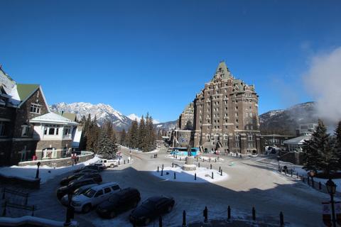 Khách sạn Fairmont Banff Springs đẹp như tranh vẽ ở Banff, Canada. Đến với nơi đây, du khách có thể chơi golf trong mùa hè và trượt tuyết vào mùa đông, là điểm đến lý tưởng cho những du khách yêu hoạt động ngoài trời.