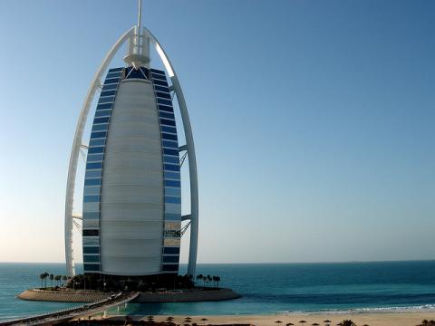 Khách sạn Burj Al Arab ở Dubai, Các Tiểu vương quốc Ả Rập Thống nhất. Nơi đây từng được bình chọn là khách sạn sang trọng, nhiều tiện nghi nhất thế giới và du khách có thể được lựa chọn thuê những siêu xe như Rolls-Royce để du ngoạn.