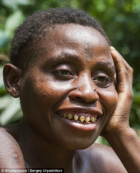 3. Một phụ nữ Baka thuộc bộ tộc Pygmy ở Khu bảo tồn Dzanga-Sangha (CH Trung Phi) cũng với bộ răng được mài nhọn (ảnh chụp năm 2008).