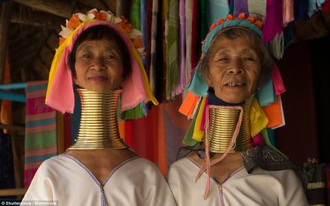 4. Những người phụ nữ ở Kayan Lahwi (Myanmar) với những chiếc cổ dài nổi tiếng, được nâng bằng những chiếc vòng đồng từ khi họ 5 tuổi. Nhiều phụ nữ Kayan có thể đeo tới 25 cái vòng chồng lên nhau như thế, khiến cổ của họ dài đến khó tin.