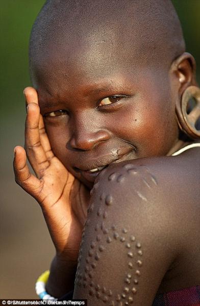 14. Phụ nữ ở các bộ tộc dọc con sông Omo của Ethiopia thường dùng một con dao cạo rạch từng đường nhỏ trên cánh tay của họ, khiến cho chỗ rạch bị sưng phồng lên để lại những vết sẹo dài.