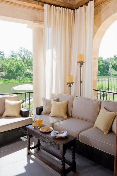 Rèm xếp nếp giúp bạn dễ dàng kiểm soát ánh nắng trên hiên nhà. Nhà thiết kế đã bổ dung những phụ kiện từ vải tạo nên phong cách cho bất kỳ hiên nhà nào.