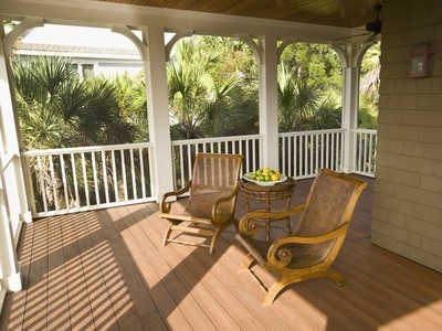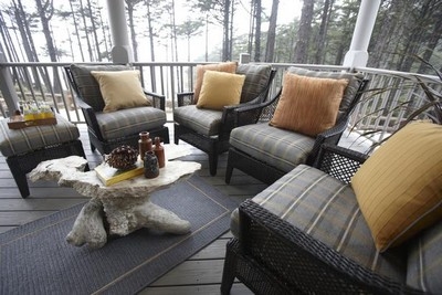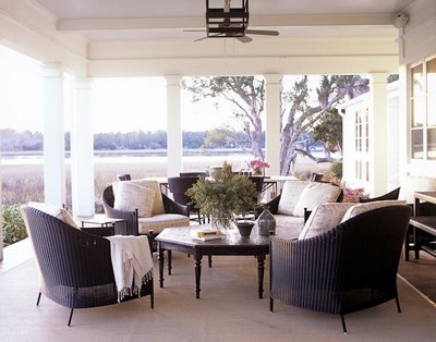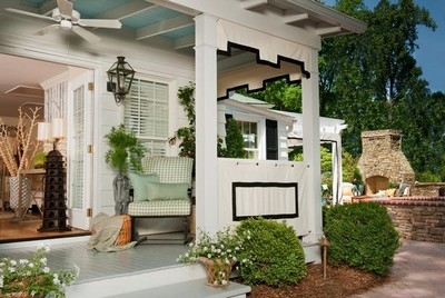 Thoái mài là yếu tố quan trọng khi thiết kế hiên nhà. Hãy làm cho nó trở nên thuận tiện như không gian trong nhà bằng những tấm đệm bọc vải, tạo sự thoải mái cho ghế ngồi.