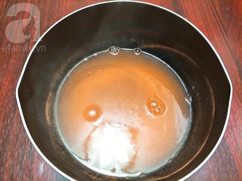 Cho nước, vỏ cam vào nồi và bật bếp nấu cho sôi khoảng vài phút là tắt bếp, lọc bỏ bã cam để lấy nước cam vừa đun, như vậy thạch cam sẽ thơm mùi cam hơn.