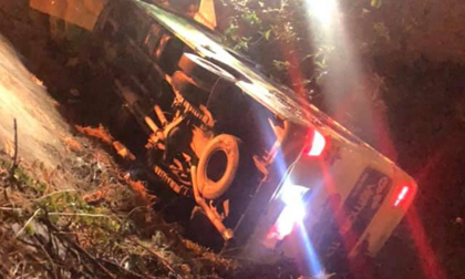 Vụ lật xe 30 học sinh một phen hú vía. Ảnh: CTV