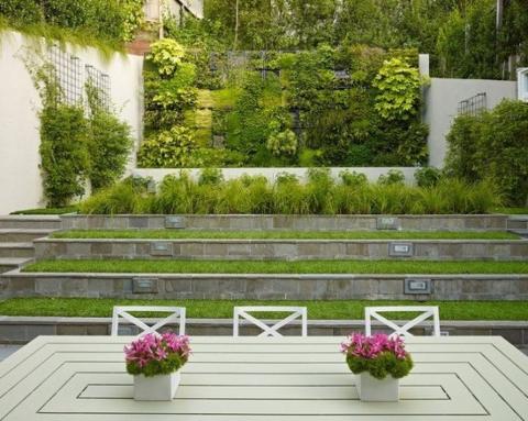 Ở thiết kế sân sau này đã được sử dụng hẳn một bức tường xanh lá cây