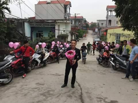 38 xe máy gắn hoa và bóng đến hỗ trợ chàng trai tỏ tình.