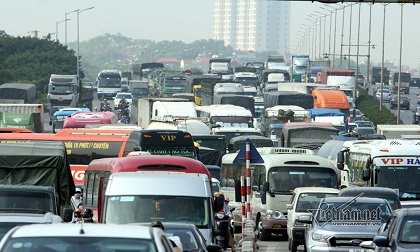 | Cầu Thanh Trì hướng từ trung tâm TP sang Gia Lâm ùn tắc nhiều giờ. |