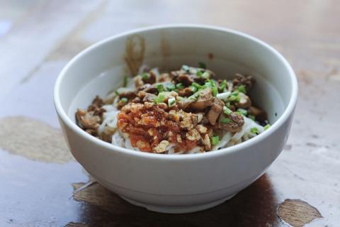Bát mỳ được chế biến với nước dùngthơm nồng vị tỏi và hạt tiêu đen, chan ngập trên lớp mỳ dài to sợi, thịt gà hoặc thịt bò xắt nhỏ có nước sốt tiêu cay ngọt được cho vào để thêm đậm vị.