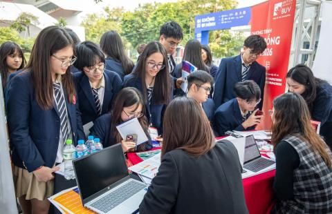 Học sinh Trường Ngôi sao Hoàng Mai đang tìm hiểu về công tác tuyển sinh