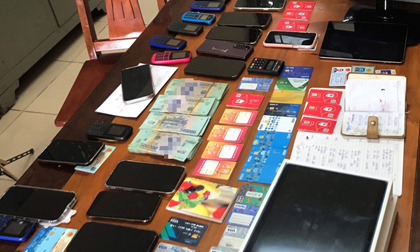 Công an đã thu giữ: 2 xe ôtô, 2 máy tính bàn, 1 máy tính bảng, 24 điện thoại di động cảm ứng, 7 điện thoại Nokia (là thiết bị gọi điện lừa đảo), 200 triệu đồng tiền mặt và các phương tiện, thiết bị khác liên quan đến hành vi phạm tội.