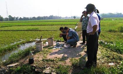 Cảnh sát môi trường đang kiểm tra ruộng rau muốn - Ảnh: A.X.