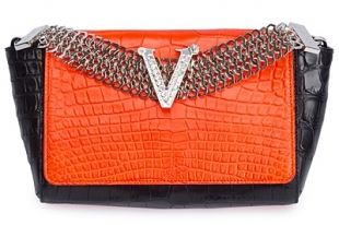 Các yếu tố trọng tâm được chọn trong bộ sưu tập chính là cây thánh giá và những sợi dây chuyền, phổ biến và mang tính biểu tượng cao. Với các họa tiết được in khắc sắc sảo, da và đinh tán và độ tương phản mạnh mẽ tạo nên sự quyến rũ không thể phủ nhận cho phụ kiện. Với tông màu đậm, được làm từ loại da có kết cấu đặc biệt, bộ sưu tập Thu 2012 của Versace giúp toát lên vẻ sang trọng, hợp thời cho phái nữ.