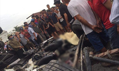 Vụ tai nạn kinh hoàng đã cướp đi mạng sống của ít nhất 6 người. Tại hiện trường, thi thể các nạn nhân nằm la liệt, hàng loạt xe máy dập nát được lực lượng chức năng nâng thùng xe tải đưa ra ngoài.