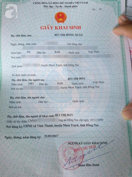 Tôi buột miệng hỏi, ai là người đặt tên cho bé. Bà Bùi Thị Bảy (70 tuổi, mẹ chị Hoa) thật thà: "Tôi kêu anh công an phường đặt cho cháu ngoại tôi luôn. Ai đặt cũng vậy. Cha nó không đặt thì mình đặt làm gì...". Dường như câu nói này làm nhói lòng chị Hoa, khiến chị dừng cười một chút. Nhưng rồi định thần lại, chị cũng chấp nhận sự thật. Có gì đâu, mọi thứ lỡ làng rồi.
