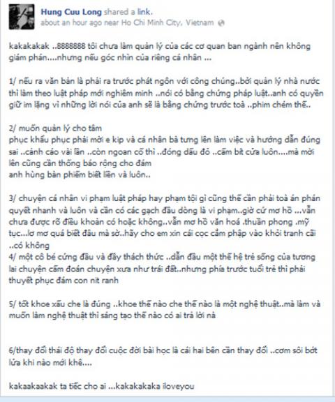 3/ Chuyện cá nhân vi phạm luật pháp hay phạm tội gì cũng thế cần phải toà án phán quyết nhanh và luôn và cần có các gạch đầu dòng là vi phạm. Giờ cứ mơ hồ, vẫn chưa được rõ điều khoản có hoặc không, vẫn mơ hồ văn hoá, thuần phong, mỹ tục, lơ mơ quá biết đâu mà sờ. Hãy cho em xin cái cọc cắm phập vào khỏi tranh cãi. Có không?