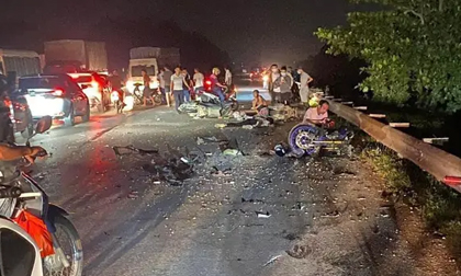 Vụ tai nạn khiến 2 người chết tại chỗ, 1 người bị thương được đưa đi cấp cứu. Tại hiện trường, 3 xe máy bị hư hỏng nặng.