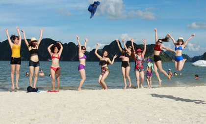 Một nhóm nữ du khách rủ nhau cùng "seo phì"