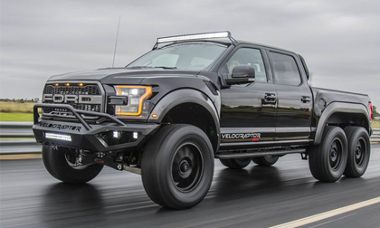 Chiếc xe bán tải Ford F-150 Raptor 2018 phiên bản 6 bánh đã được hãng độ Hennessey nổi tiếng của Mỹ ra mắt tại triển lãm xe độ SEMA diễn ra tại Las Vegas - Mỹ vào ngày 31/10 đến 4/11. Chiếc xe này được hãng độ Hennessey đặt tên là VelociRaptor 6x6 và chỉ có 50 chiếc được sản xuất, kèm với mức giá bán không hề rẻ: 349.000 USD (8 tỷ đồng) - đắt gấp 7 lần phiên bản tiêu chuẩn.