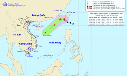 Vị trí và hướng đi của bão số 11 (Ảnh: NCHMF)