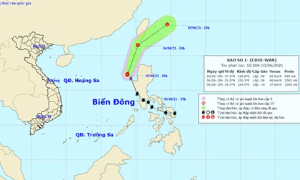 Theo thông tin từ Trung tâm khí tượng thủy văn Quốc gia, biển Đông đón cơn bão số 1 trong năm 2021 với tên quốc tế Choi-Wan.