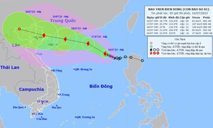Theo Trung tâm Dự báo khí tượng thuỷ văn quốc gia, ngày 16/7, vị trí tâm bão số 1 (tên quốc tế bão Talim) cách bán đảo Lôi Châu (Trung Quốc) khoảng 710km về phía Đông Đông Nam. Sức gió mạnh nhất vùng gần tâm bão mạnh cấp 9 (75-88km/giờ), giật cấp 11.
