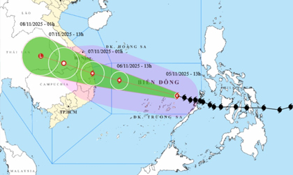 Dự báo trong 24–36 giờ tới, bão sẽ áp sát bờ, đổ bộ khu vực từ Quảng Ngãi đến Đắk Lắk vào rạng sáng 7/11, khi vẫn còn sức gió cấp 12, giật cấp 15, trước khi suy yếu thành áp thấp trên đất Lào.
