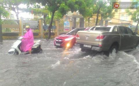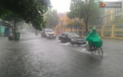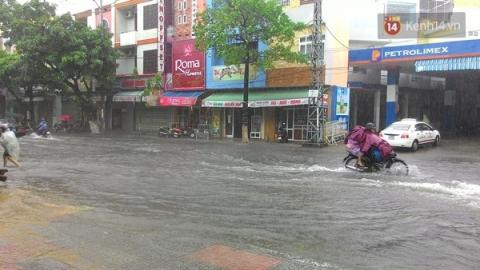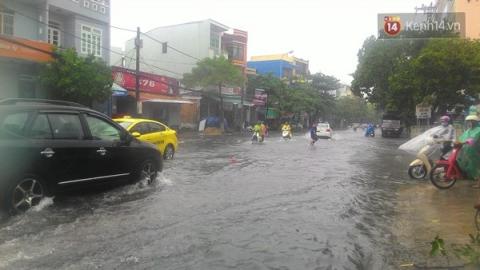 Do ảnh hưởng bão số 3, sáng 14/9, trời Đà Nẵng tiếp tục mưa lớn, gió giật mạnh. Nhiều tuyến đường trung tâm TP bị ngập nặng khiến người dân đi lại hết sức khó khăn.