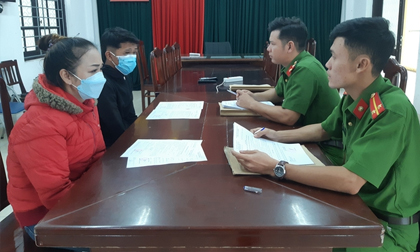 Đối tượng Hoàng Thị Thủy làm việc với cơ quan Công an.