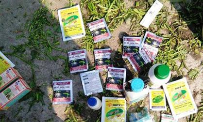 Ngoài tưới nhớt thải, bà Lan còn sử dụng nhiều loại thuốc,