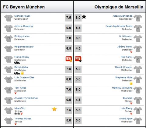 Với lợi thế sân nhà, Bayern Munich đã không mất quá nhiều sức để có được thắng lợi nhẹ nhàng 2-0 trước đại diện nước Pháp Marseille, qua đó giành quyền vào bán kết với tổng tỉ số 4-0 sau hai lượt trận.