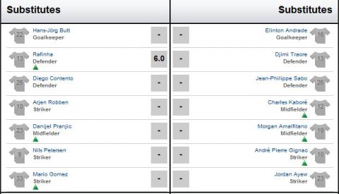 Bayern: Neuer ; Lahm, Boateng, Badstuber, Alaba; Gustavo, Tymoschuk; Ribery, Mueller, Kroos; Olic.
