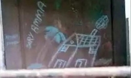 Dòng chữ viết nguệch ngoạc của cô bé trên cánh cửa nhà.