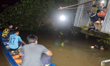 Tối 9/9, hàng chục cán bộ, chiến sĩ của Phòng Cảnh sát Phòng cháy chữa cháy và Cứu hộ, cứu nạn (Công an Sóc Trăng) vẫn lặn tìm bé gái 3 tuổi mất tích dưới sông ở xã An Hiệp, huyện Châu Thành.