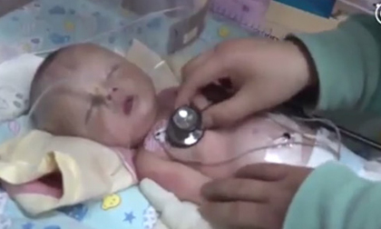 Sau đó, em bé được khẩn trương đưa tới phòng khám ở thành phố Giang Tân. Theo bác sĩ An Yue, bé trai này được một tháng tuổi, miệng dính đầy cát, tim đập chậm và thân nhiệt thấp. Tuy nhiên, bé trai có thể bình phục và cần nhiều thời gian chăm sóc để lấy lại sức khỏe.